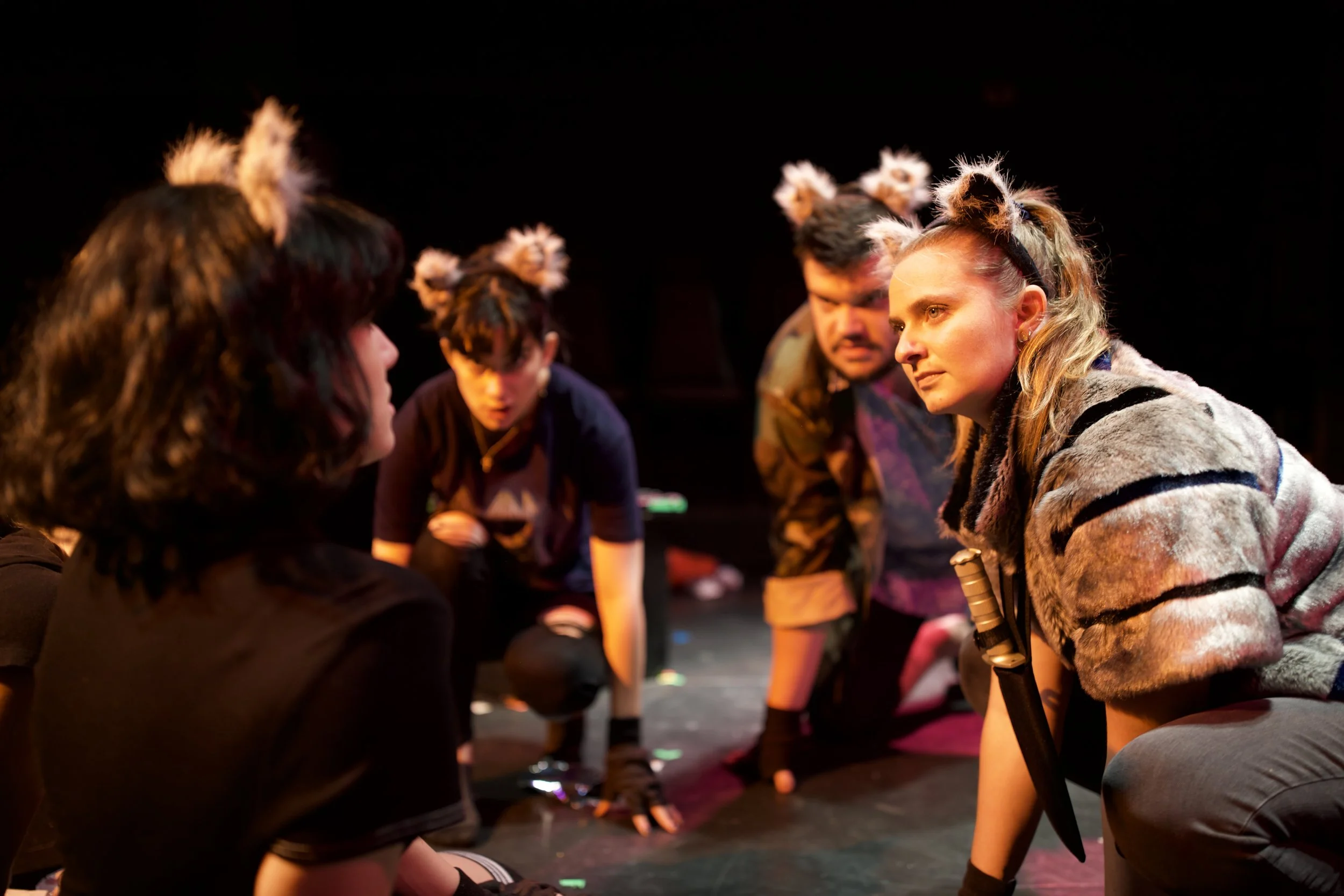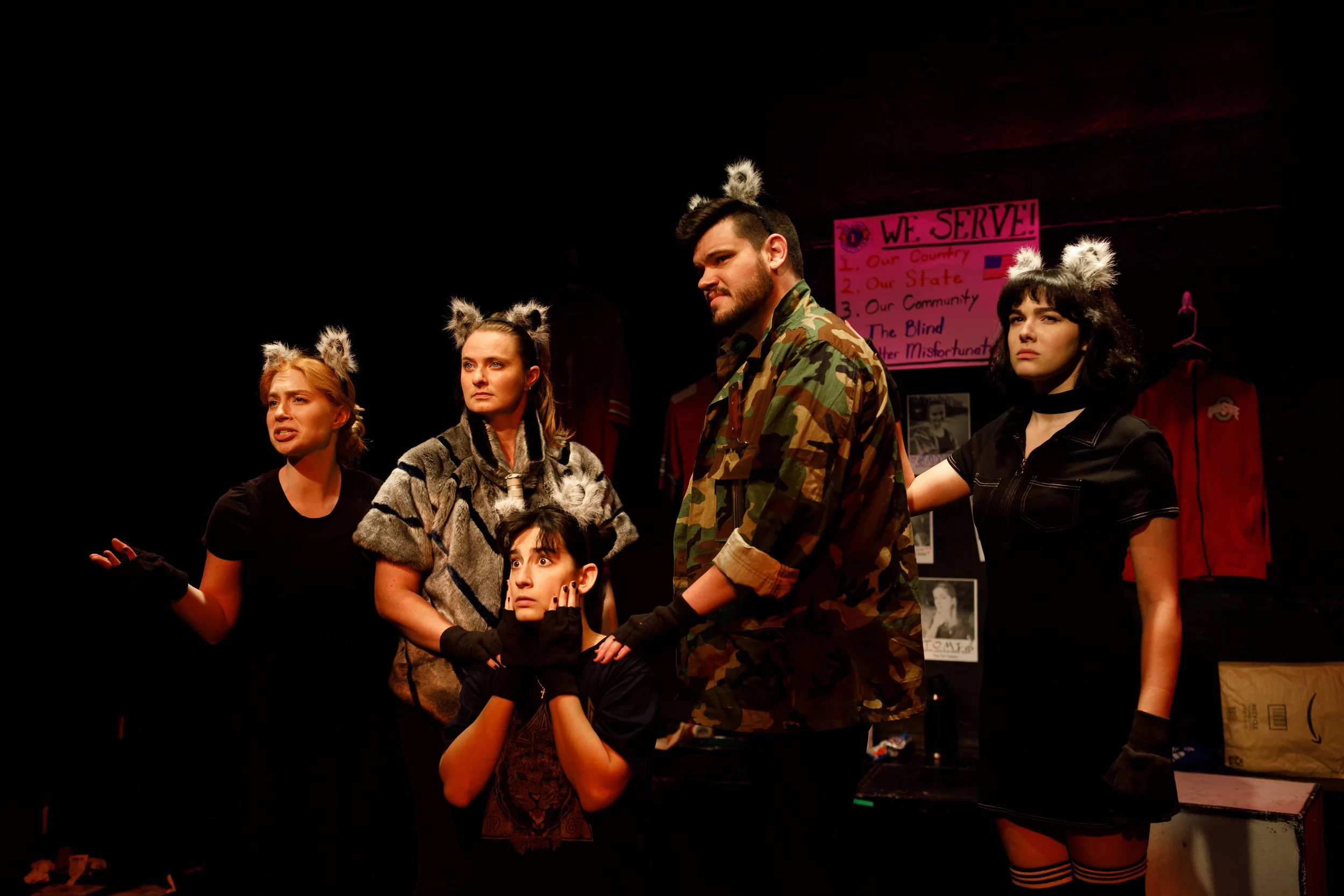 Meanwhile, in the basement, President Sly Cooper, a literal Raccoon, addresses the Danville, OH Raccoon Club after declaring martial law due to dubious election results. Facing an insurrection and a mole in their camp, Sly and her minions must find a way to bring their population to heel. Raccoon Play is a satire examining how conspiracy theories have destroyed Midwest towns and how the alt-right will never be satisfied.